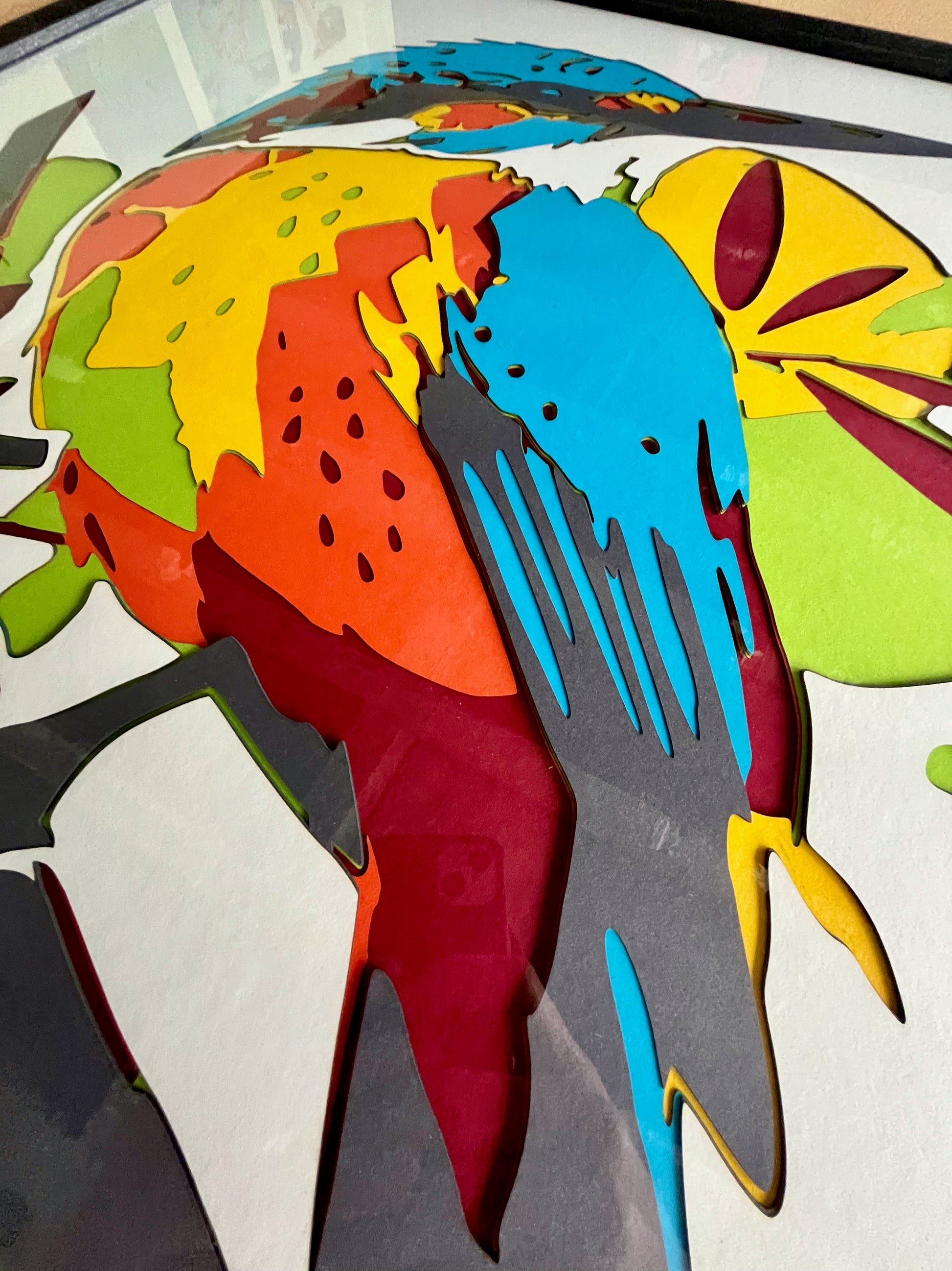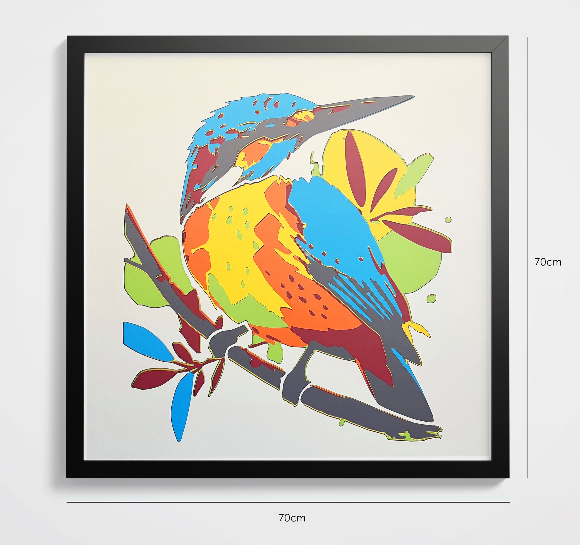 Let your interior take creative flight with our colorful bird, a vibrant vision captured by the precision of laser cutting on thick 300g paper. Its vibrant colors, framed in elegant black frame in a 70x70cm format, bring an artistic lightness to your walls. It's not just a decoration, it's an invitation to dream, a silent song of colors that transforms your space into a haven of inspiration.