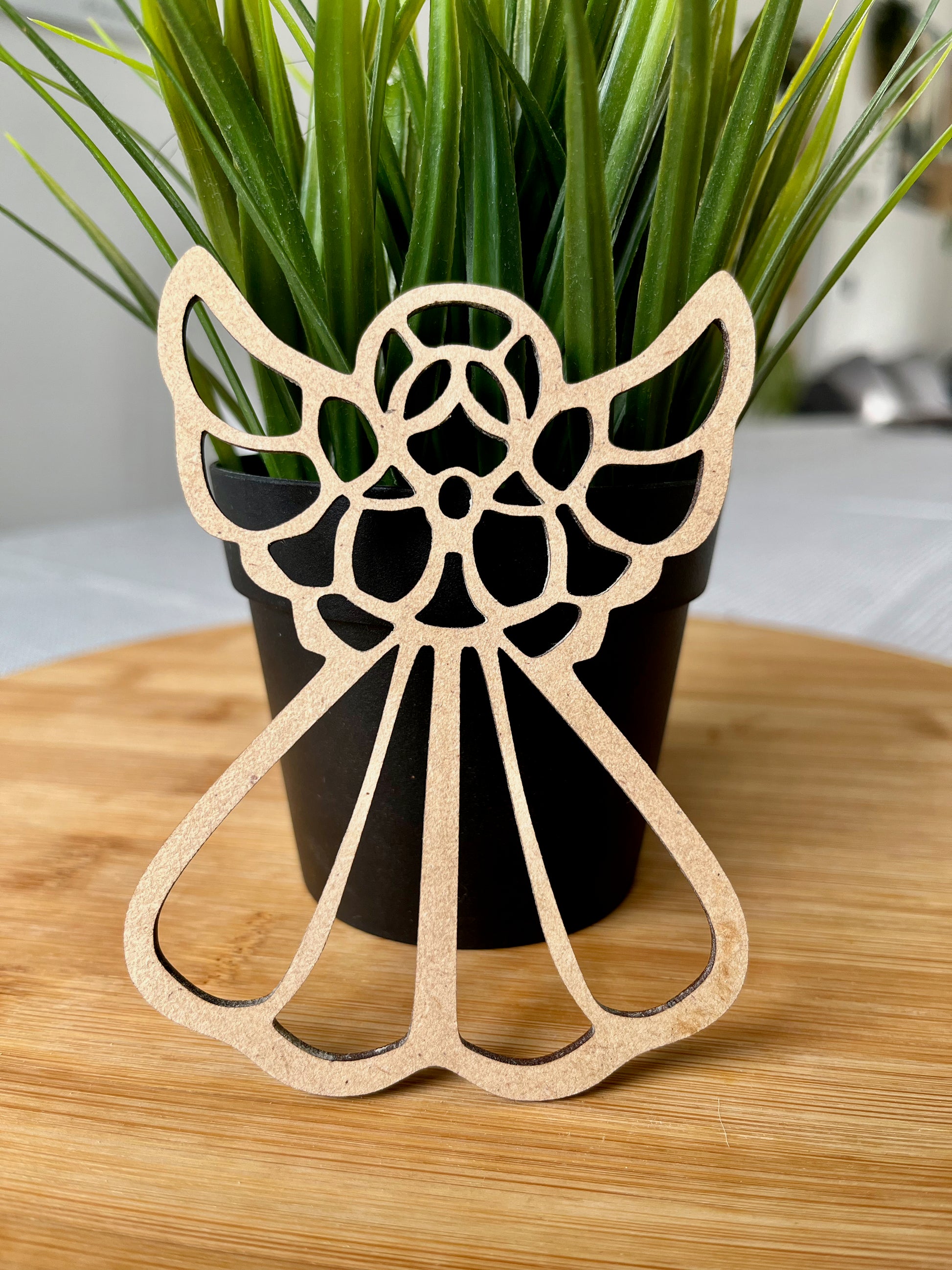 Découvrez nos délicats anges en bois découpé au laser, parfaits pour apporter une touche de magie à votre sapin de Noël. Légers et aériens, ils se glisseront parmi vos branches pour créer une ambiance féérique.