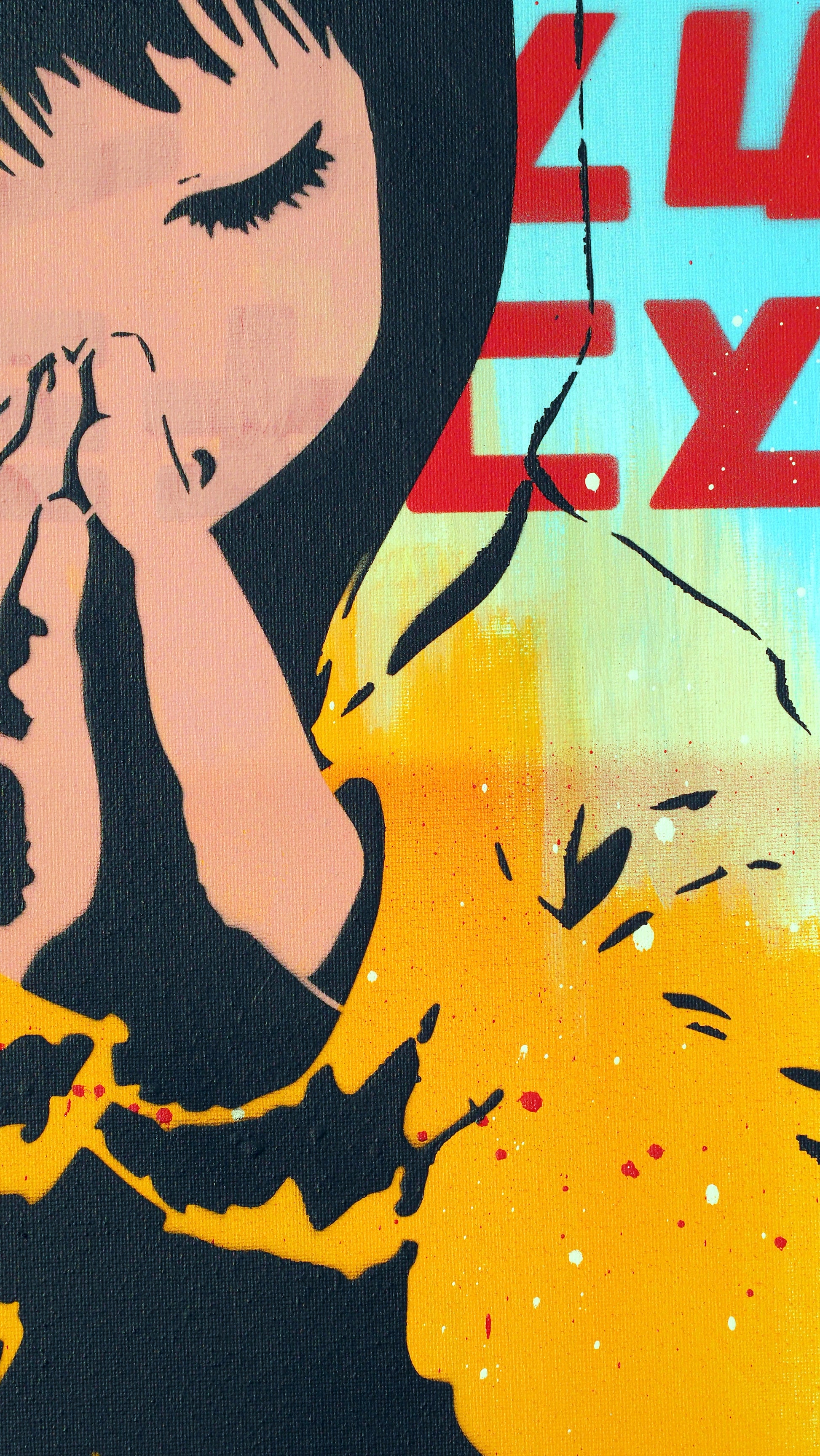 "Une œuvre qui apaise l'esprit tout en réveillant votre décoration. Elle célèbre l'innocence avec la force d'un graffiti mural au cœur de Tokyo."
